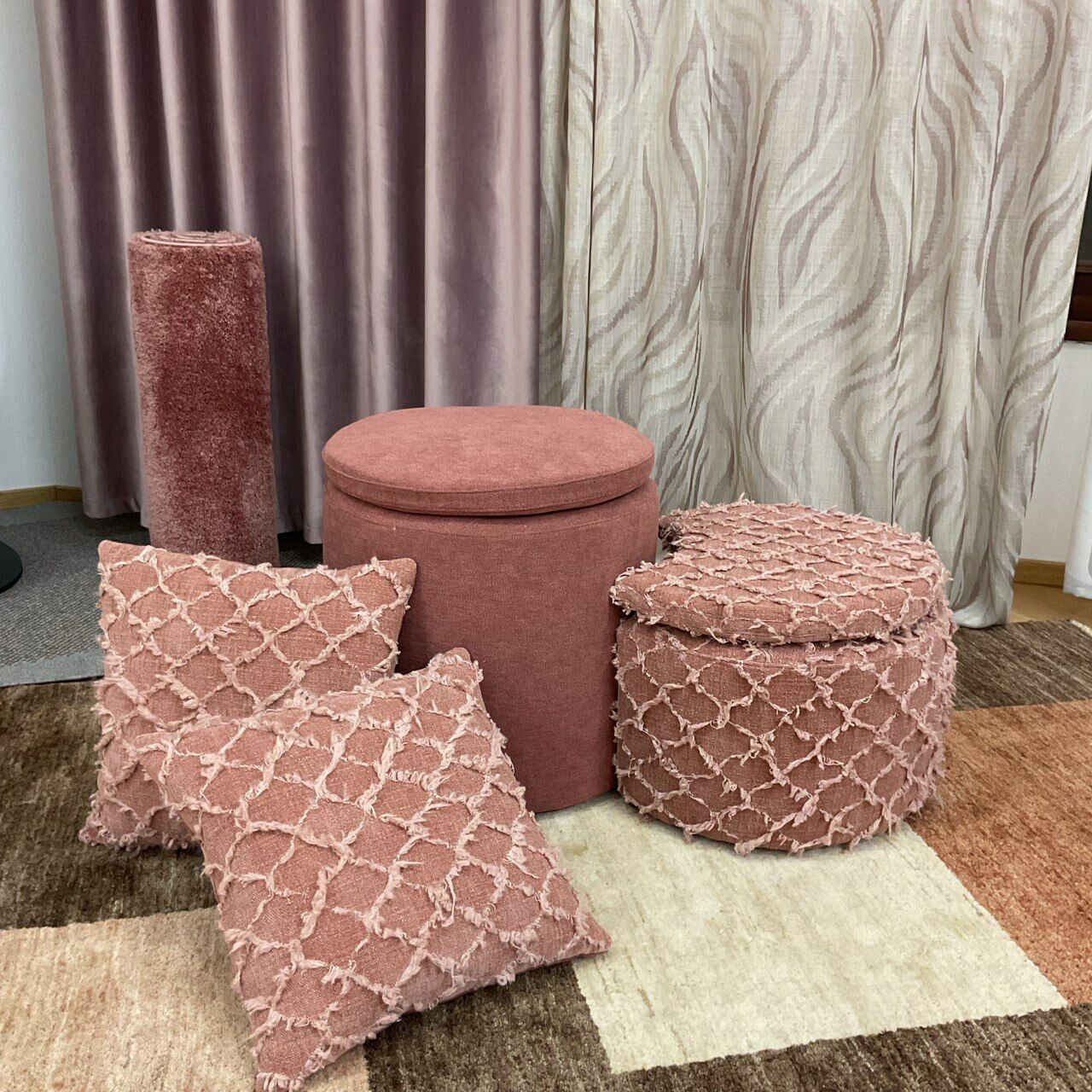 Da poco abbiamo desciso di ralizzare simpatici pouf da salotto, da abbinare a cuscineria o tappezzeria.
